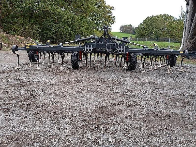 doppelreihiger, in der Neigung und Arbeitstiefe verstellbarem Striegel hinten
